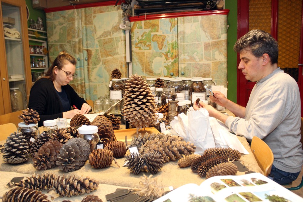 A számos különböző méretű és külsejű tobozt alapos gondossággal készítették elő a szállításhoz: a kisebb tobozokat papírtasakokba, majd használt fóliába tették, az óriástobozú fenyő toboza pedig ennél is nagyobb odafigyelést igényelt, ezt használt zsugorfóliába tekerték, hogy sértetlenül érkezhessen Debrecenbe.