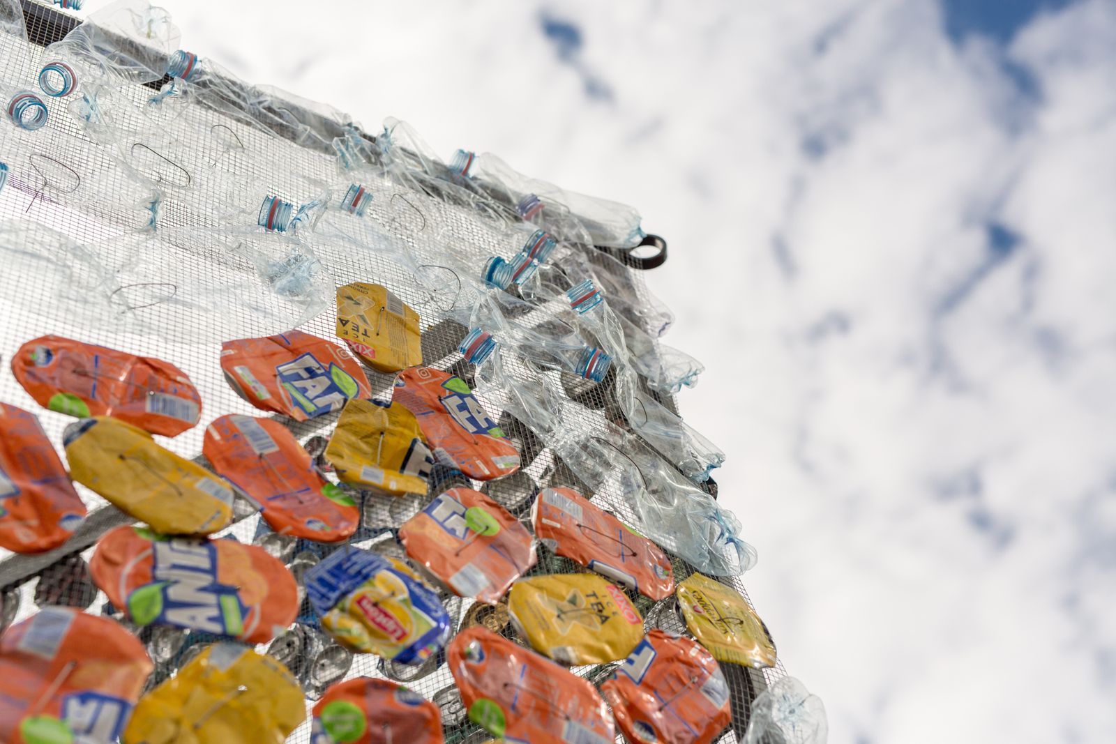 – Az volt az izgalmas, hogy a szemetet a bank dolgozói „termelték”, azt használtam fel, amit ők gyűjtöttek össze. Egy kicsit magam is része lettem az életüknek – hiszen ki tudja, milyen történet kötődik egy kiürült üdítős dobozhoz… Ez persze, nem derül ki számomra, mégis közöm lesz hozzá, azzal, hogy a hulladékot tovább alakítom, megdolgozom, annak érdekében, hogy egy kép része lehessen… Számomra természetes, hogy szemétből kialakított mozaikképekkel juttatok el egy üzenetet. Ez szerintem éppúgy funkcionál, ahogyan annak idején a román kori mozaikokkal fogalmaztak meg fontos gondolatokat az alkotók – csak akkor a templomokban volt erre a legnagyobb információhordozó felület. Egy mai alkotó ott kommunikál az emberekkel, ahol tud, ahol létrejön egy találkozási pont… Ezért lett a tavaly kiállított szobor címe: Találkozópont.