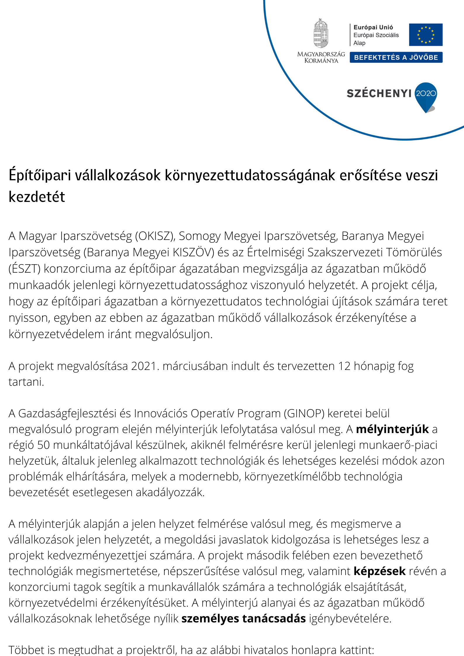 Építőipari vállalkozások környezettudatosságának erősítése veszi kezdetét
