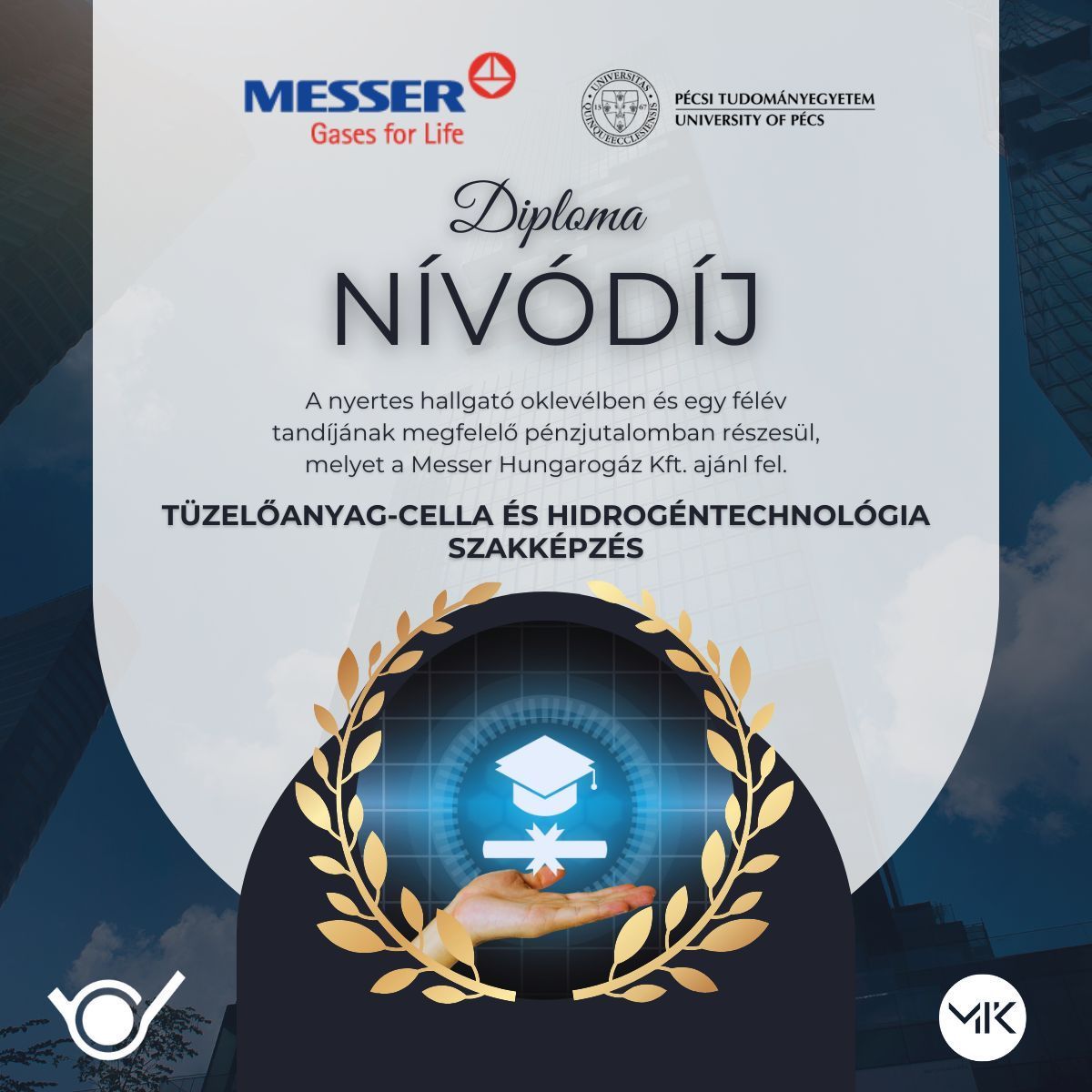 Új szakmai mérföldkőhöz érkezett a Messer és a Pécsi Tudományegyetem többéves oktatási együttműködése: megalapították a Messer Diplomamunka Nívódíjat. Célja a hidrogéntechnológia és tüzelőanyag-cellák területén született kimagasló diplomamunkák elismerése.
